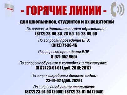 «ГОРЯЧИЕ ЛИНИИ» для школьников, студентов и их родителей Вологодской области