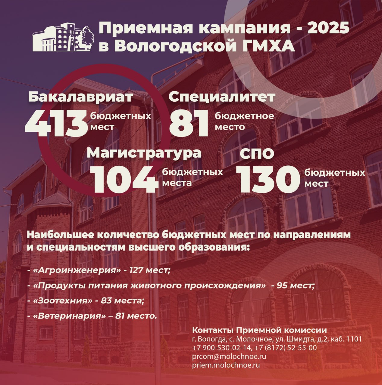 Вы можете подать документы в вузы Вологодской области: