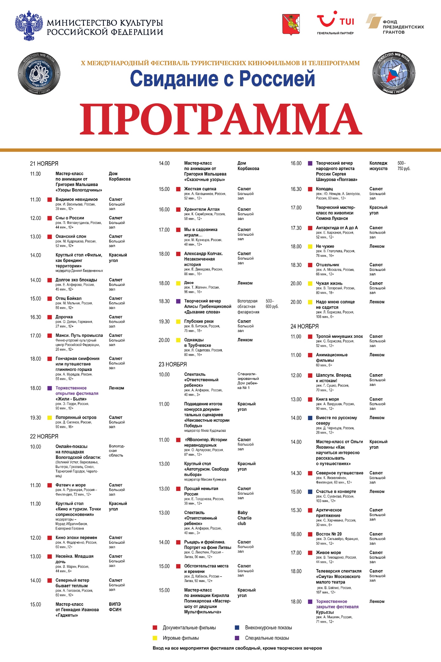 В период с 21 по 24 ноября в Вологодской области пройдут мероприятия Х Международного фестиваля туристических кинофильмов и телепрограмм «Свидание с Россией».