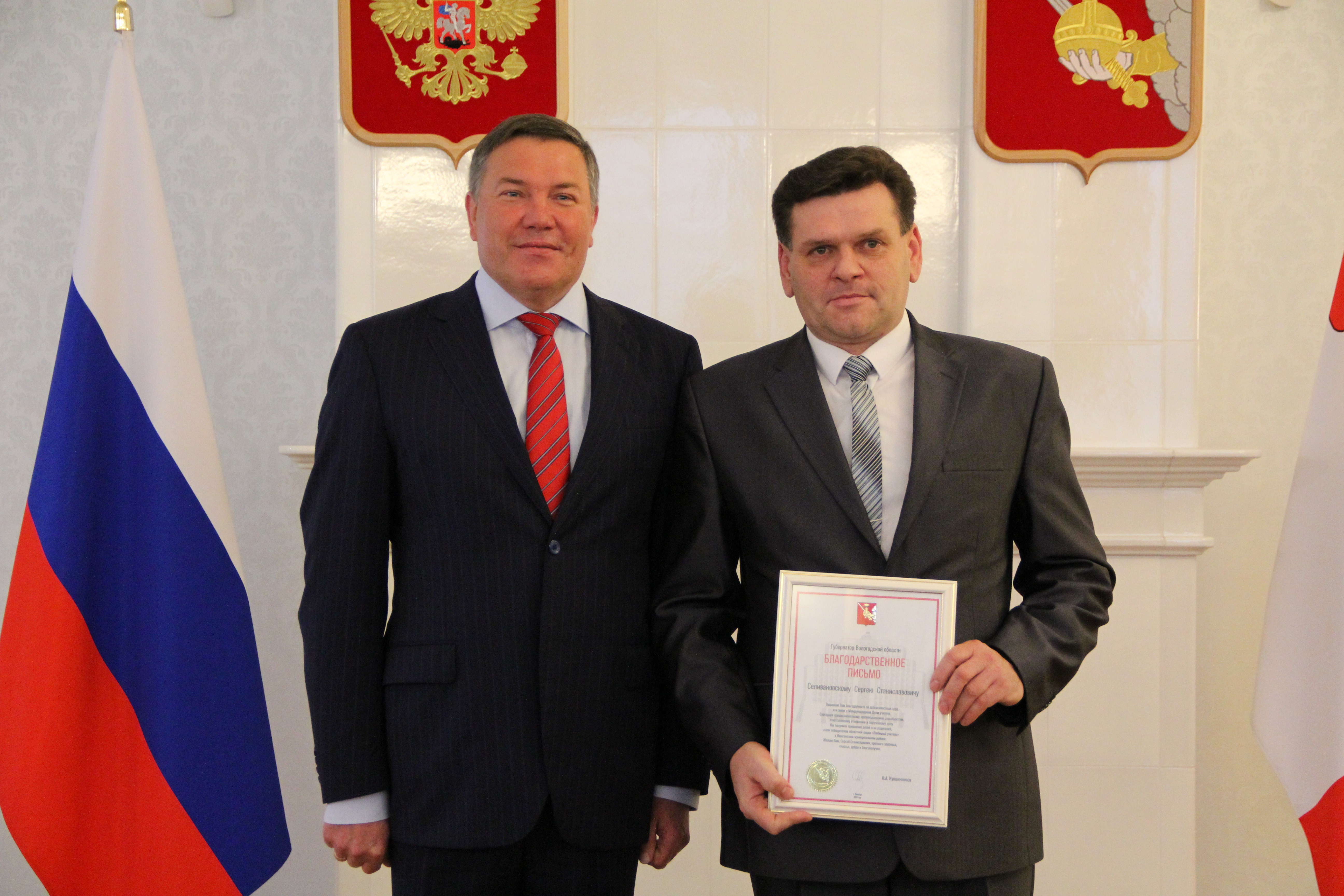Селивановский Сергей Станиславович, учитель БОУ "Нюксенская СОШ" на торжественном приёме у Губернатора Вологодской области 05.10.2016 года.